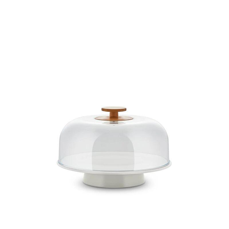 Alzata in porcellana. Campana in PMMA con pomolo in legno di bambù.