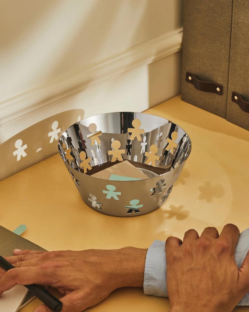 Il cestino traforato Girotondo è un icona del catalogo Alessi. Il duo creativo King-Kong, Stefano