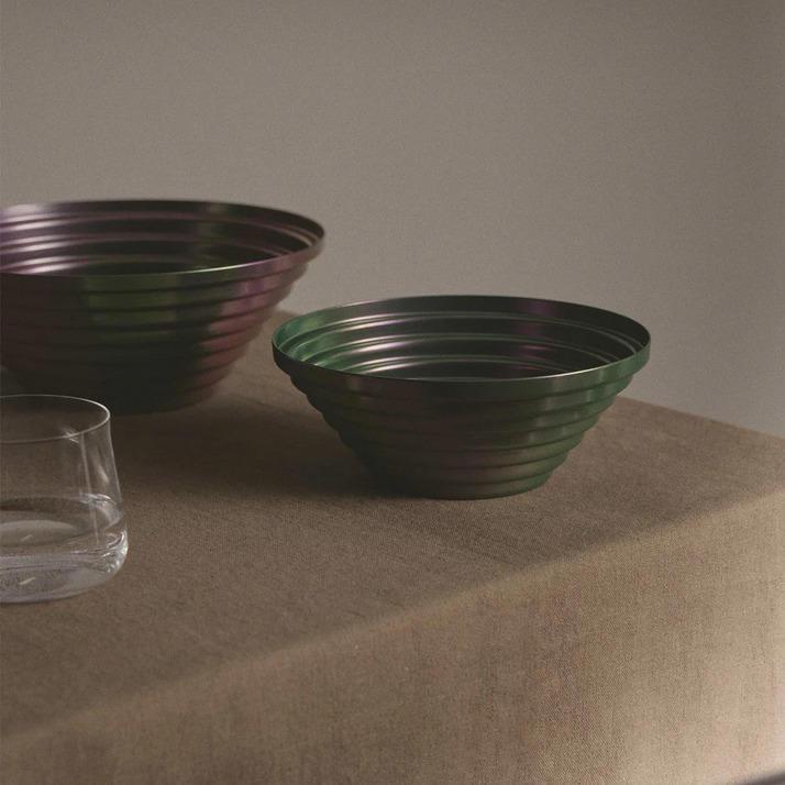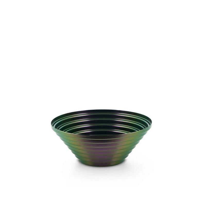Cestino rotondo in acciaio colorato con resina ad effetto cangiante, Greenpurple.