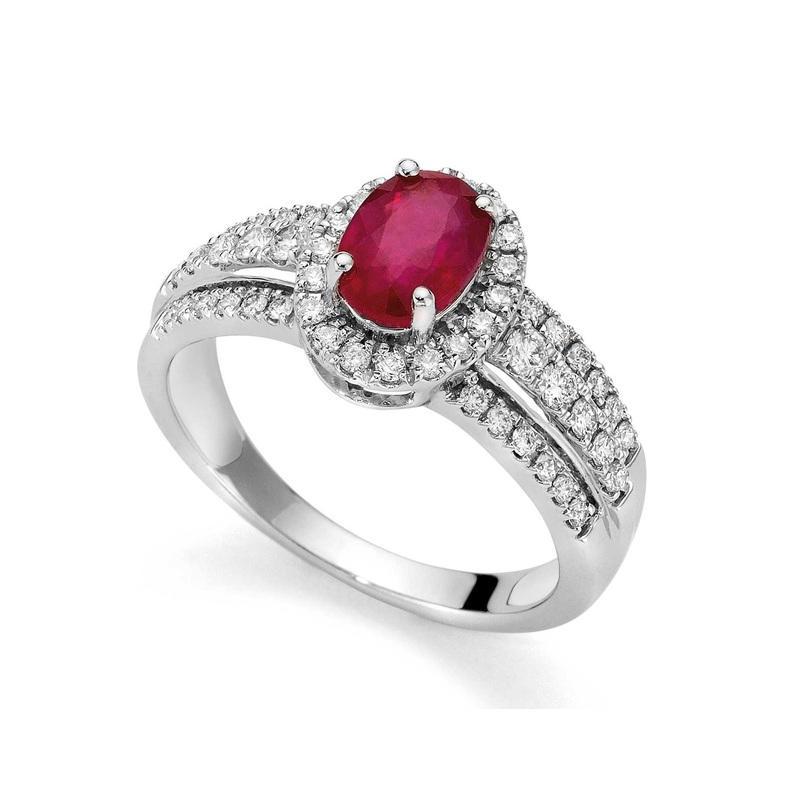 Anello in oro bianco 18 kt con rubino ct 1,40 e diamanti ct 0,60 colore G purezza VS