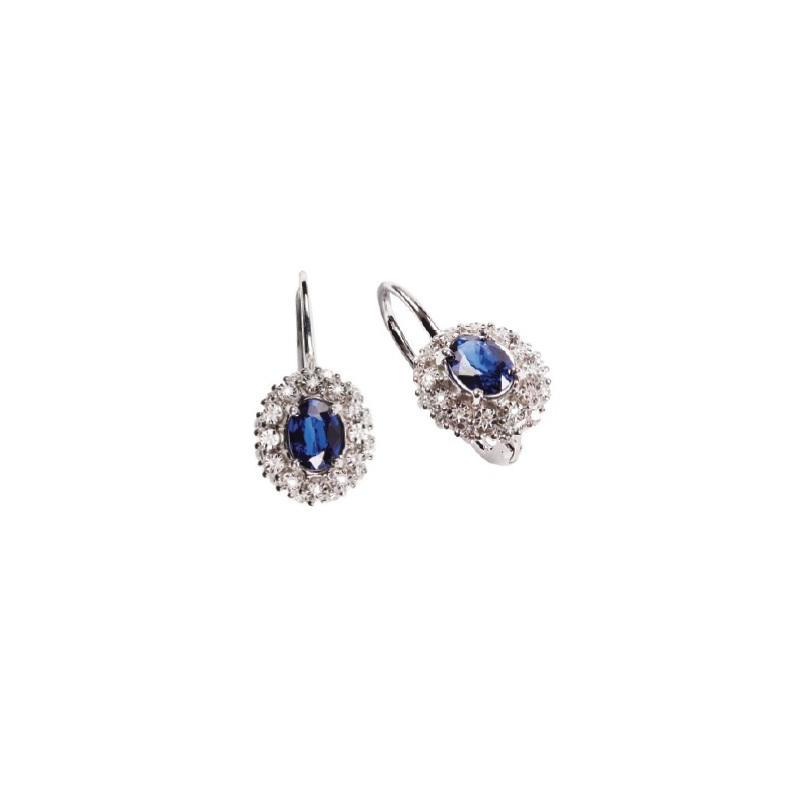 Orecchini in oro bianco 18 kt con zaffiri ct 1,80 e diamanti ct 0,43 colore G purezza VS