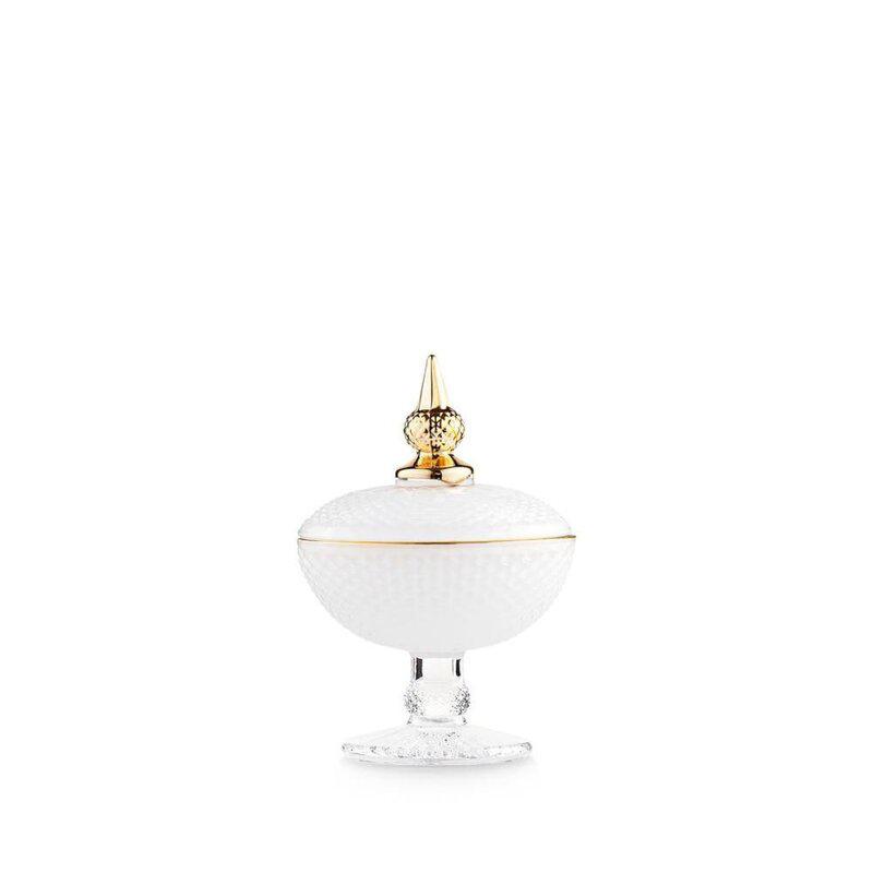 design senza tempo. Il vetro, lavorato con estrema cura, si tinge di un bianco luminoso che cattura