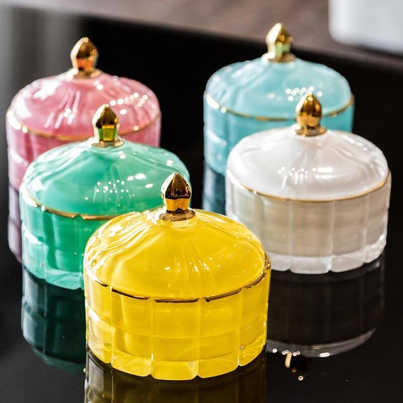 vetro rosa cipria e oro. Dal design raffinato e dalla cromia glam chic, questa scatola decorativa si