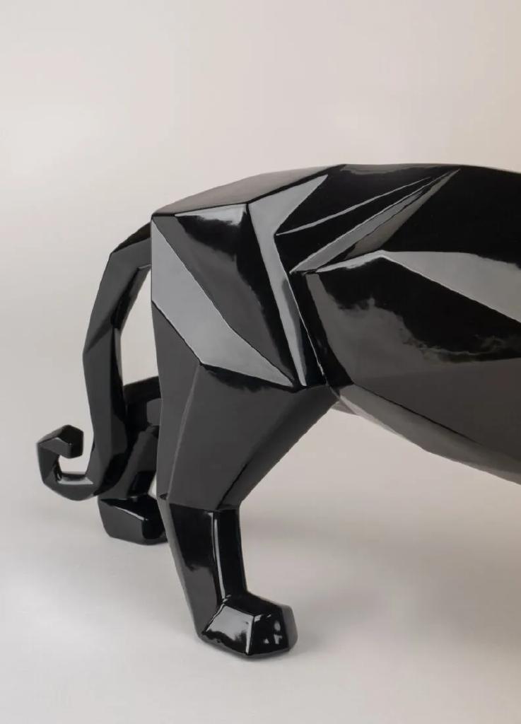 Pantera della collezione origami realizzata in porcellana nero lucido