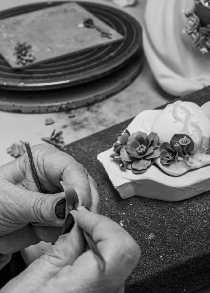 porcellana. Una creazione elaborata in porcellana bianca opaca perfettamente scolpita, da cui