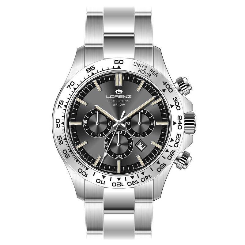 Lorenz Orologio maschile crono al quarzo con quadrante grigio e datario 42mm