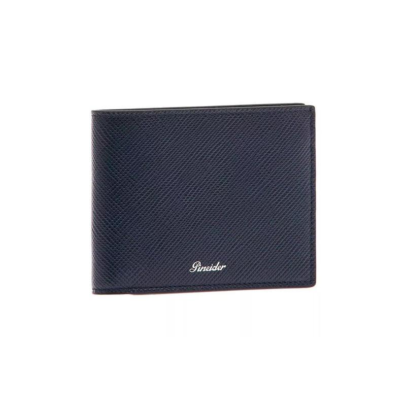 Pineider Portafoglio 8 carte blu in pelle Collezione Essenziale
