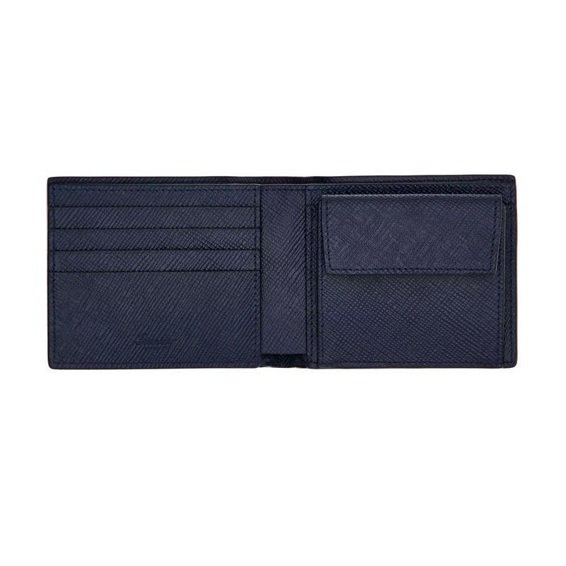 Pineider Portafoglio con porta monete blu in pelle Collezione Essenziale