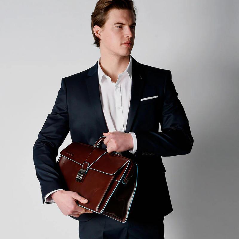 Piquadro Borsa da dottore mogano in pelle Blue Square