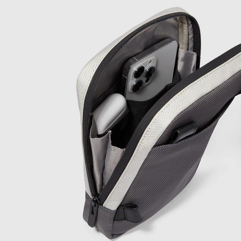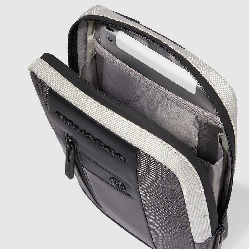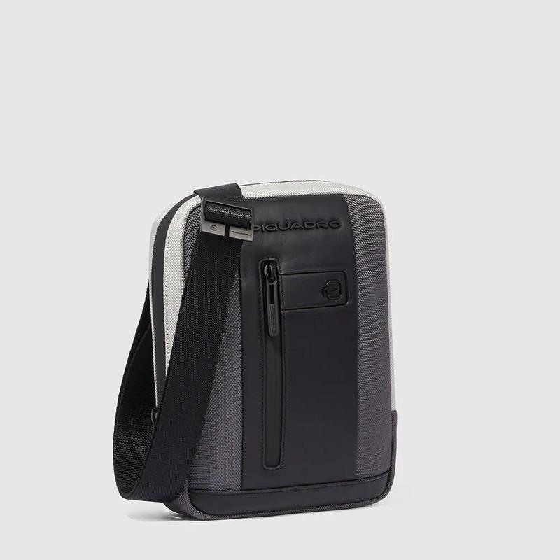 Piquadro Borsello uomo grigio in tessuto riciclato e pelle porta iPad mini