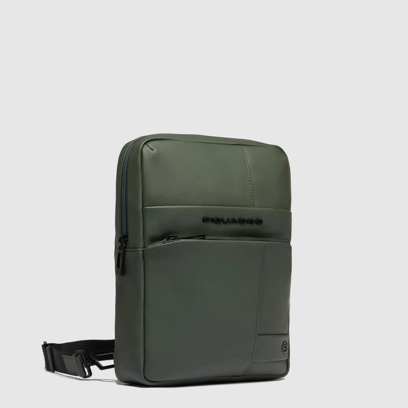 Piquadro Borsello uomo verde in tessuto gommato resistente all’acqua porta iPad