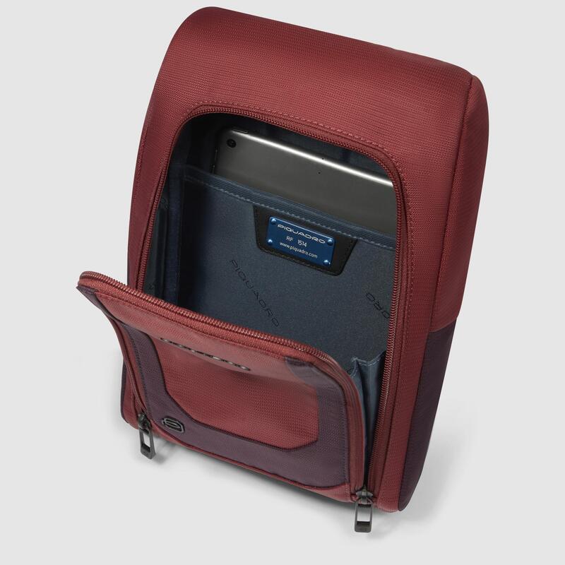 Monospalla uomo porta iPad mini in tessuto riciclato e pelle con protezione RFID
