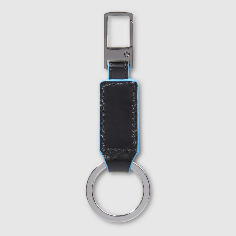Piquadro Moschettone portachiavi nero in pelle Blue Square