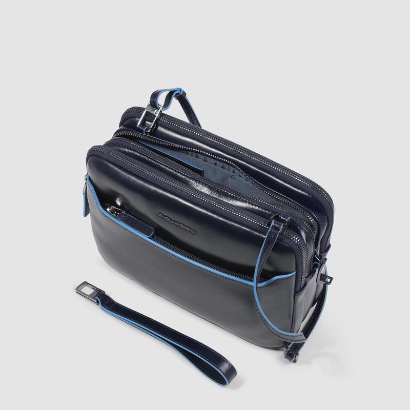 Piquadro Pochette uomo blu in pelle con chiusura a impronta digitale Blue Square