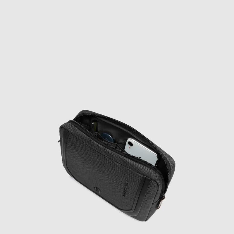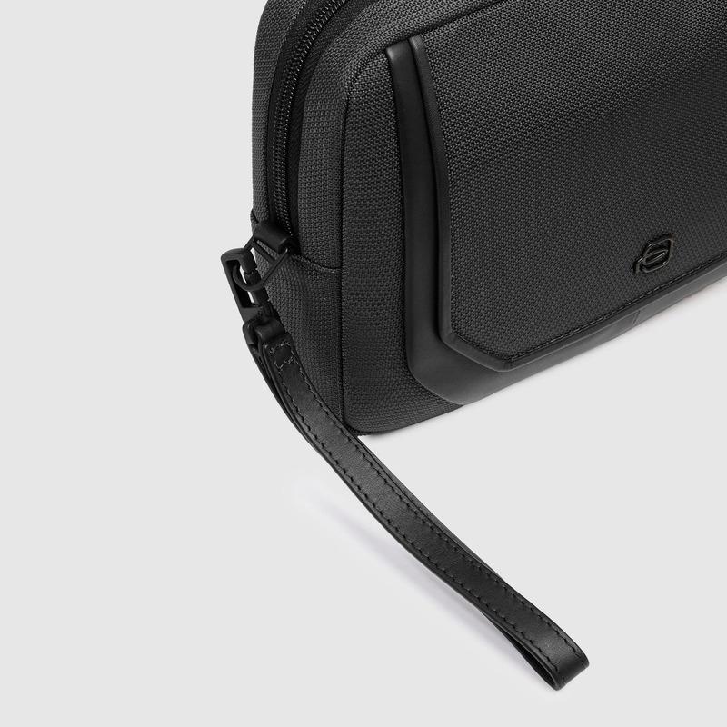 Piquadro Pochette uomo nero in pelle e tessuto riciclato Lyss