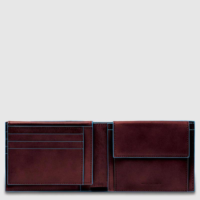 Piquadro Portafogli uomo mogano in pelle con portamonete Blue Square