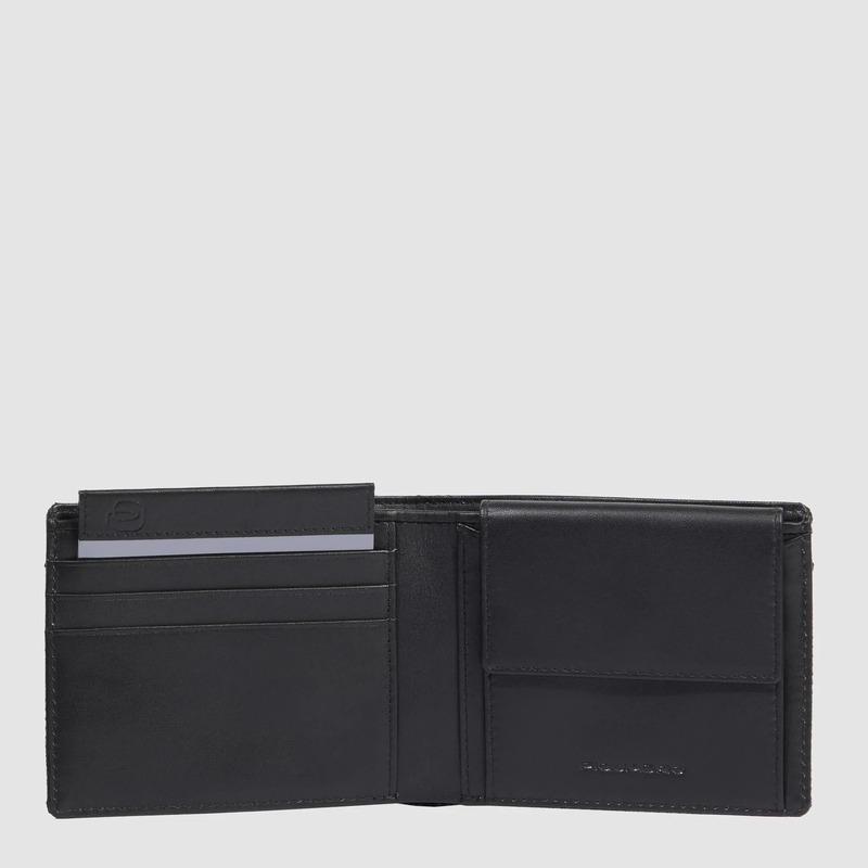 Piquadro Portafogli uomo nero in tessuto e pelle con portamonete Orion