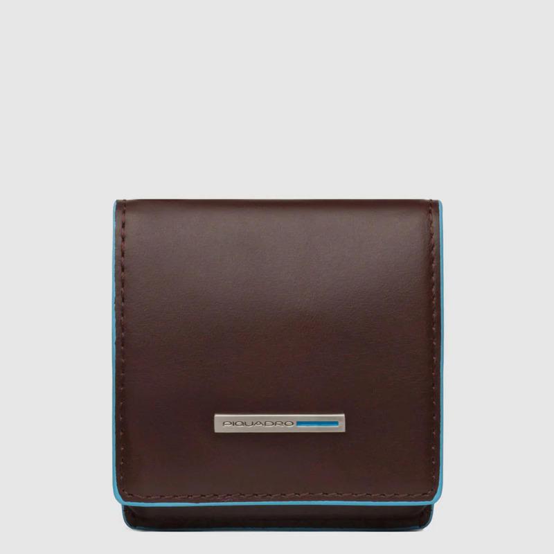 Piquadro Portamonete quadrato mogano in pelle Blue Square