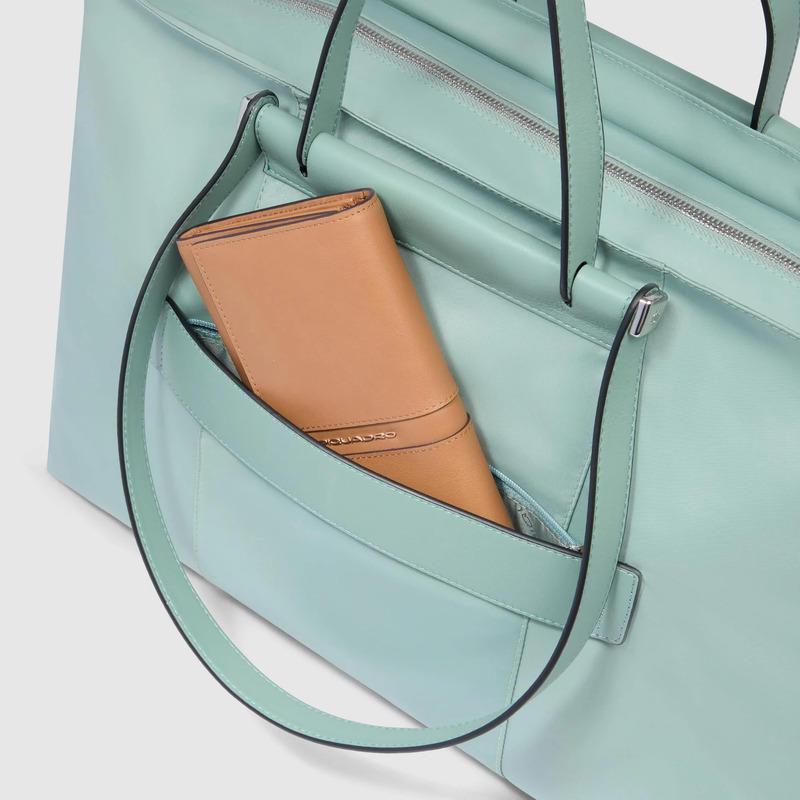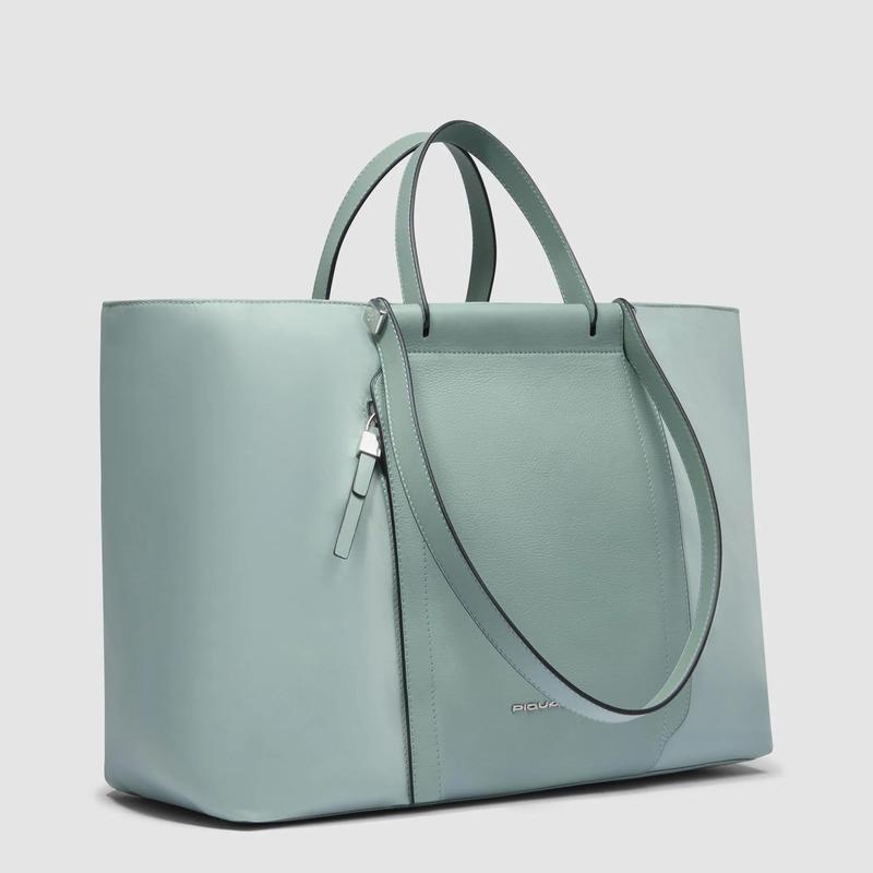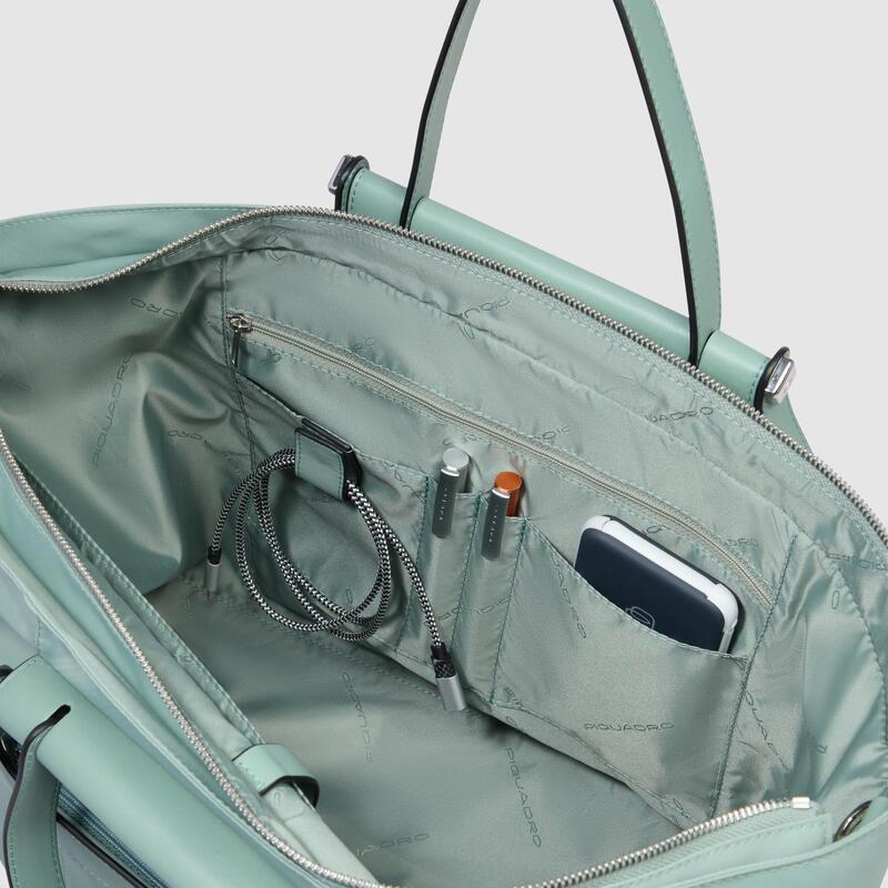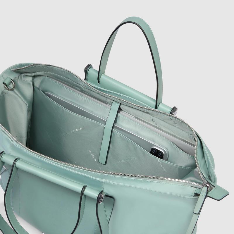 Piquadro Shopping bag verde in tessuto e pelle porta pc 15,6″ pieghevole Lyra