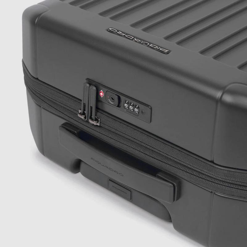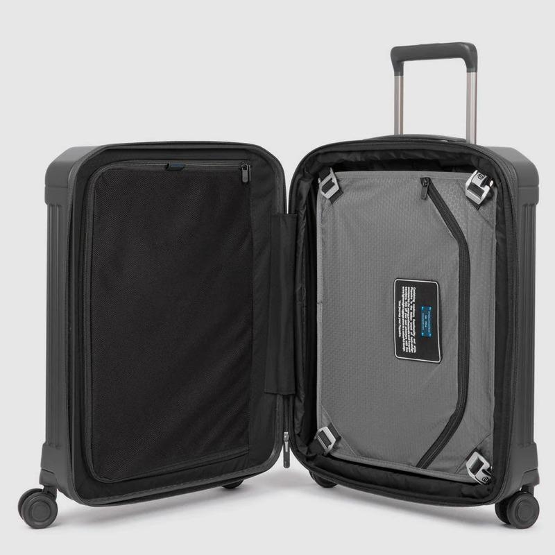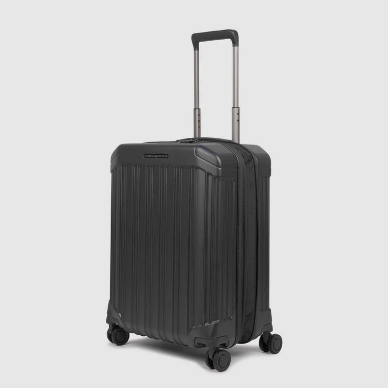 Piquadro Trolley bagaglio a mano nero opaco espandibile in policarbonato con 4 ruote PQ-Light