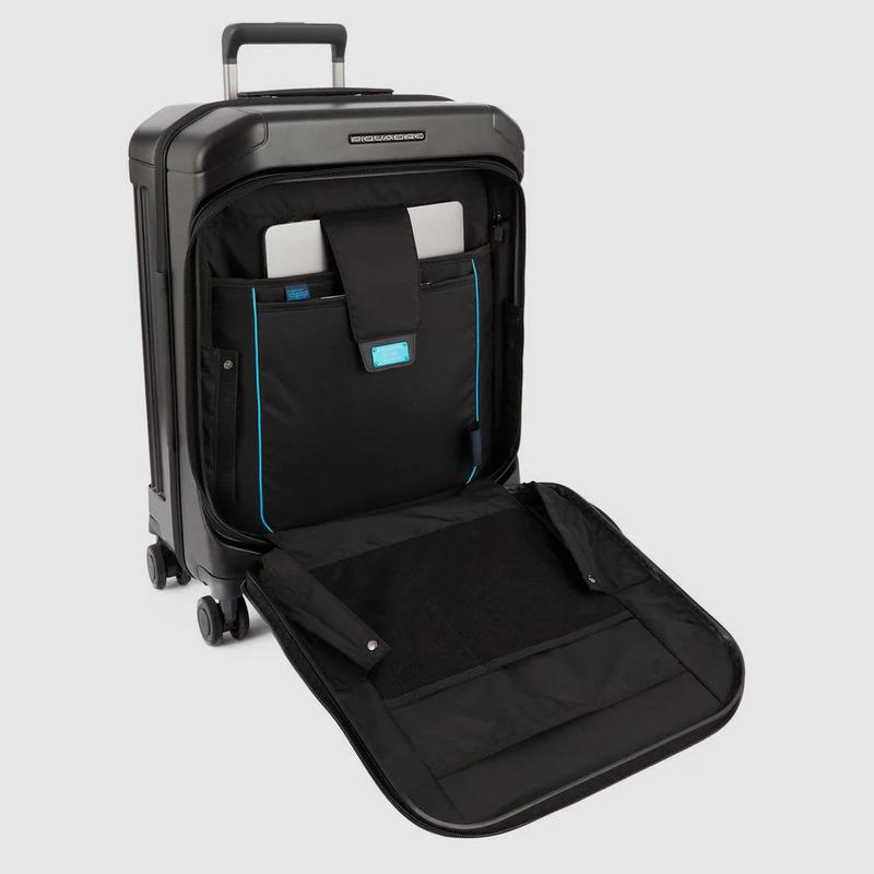 Trolley cabina rigido a 4 ruote con tasca frontale porta pc e iPad Pro 12,9 e lucchetto TSA con porte USB e USB Type C