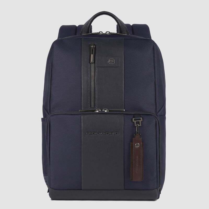 Piquadro Zainetto blu in tessuto riciclato e pelle porta pc 14″ Brief