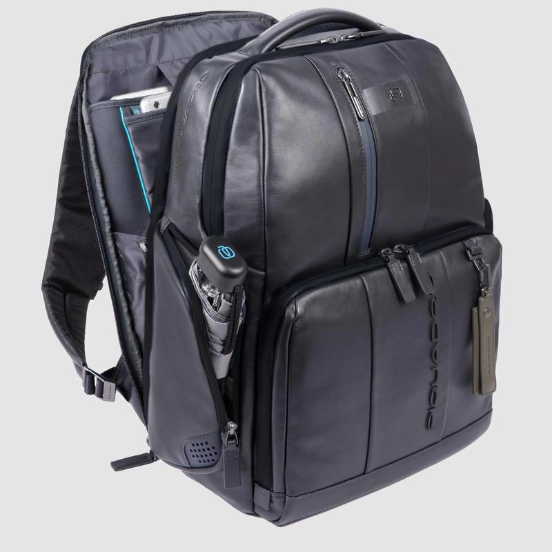 Piquadro Zaino blu in pelle porta pc 15,6″ personalizzabile Urban