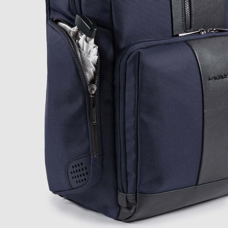 Zaino uomo fast-check porta pc e iPad in tessuto riciclato e pelle con protezioni antiurto e RFID, tasche porta bottiglia o ombrello e per AirPods