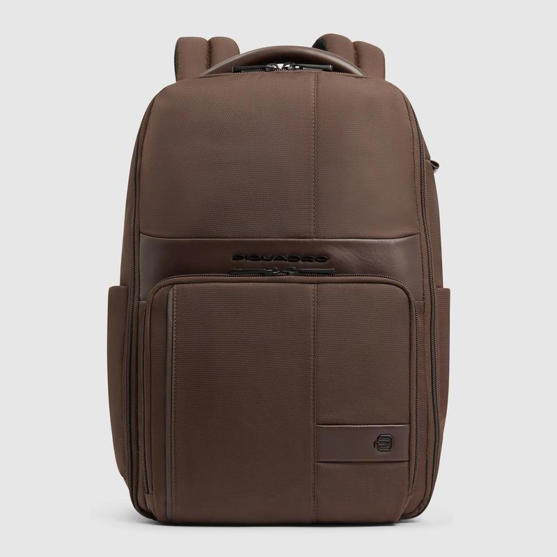 Piquadro Zaino da viaggio marrone in tessuto e pelle porta pc 14