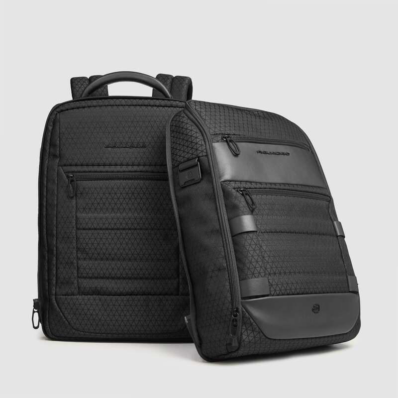 Piquadro Zaino da viaggio modulare 2 in 1 nero in tessuto e pelle porta pc 15,6″ Hexagon