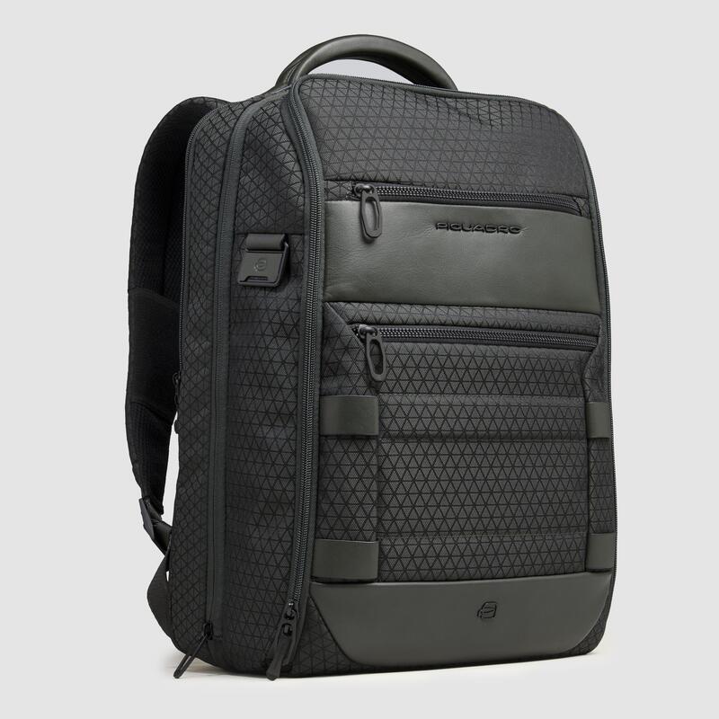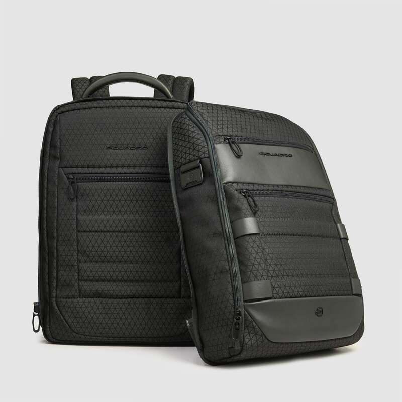 Piquadro Zaino da viaggio modulare 2 in 1 verde in tessuto e pelle porta pc 15,6″ Hexagon