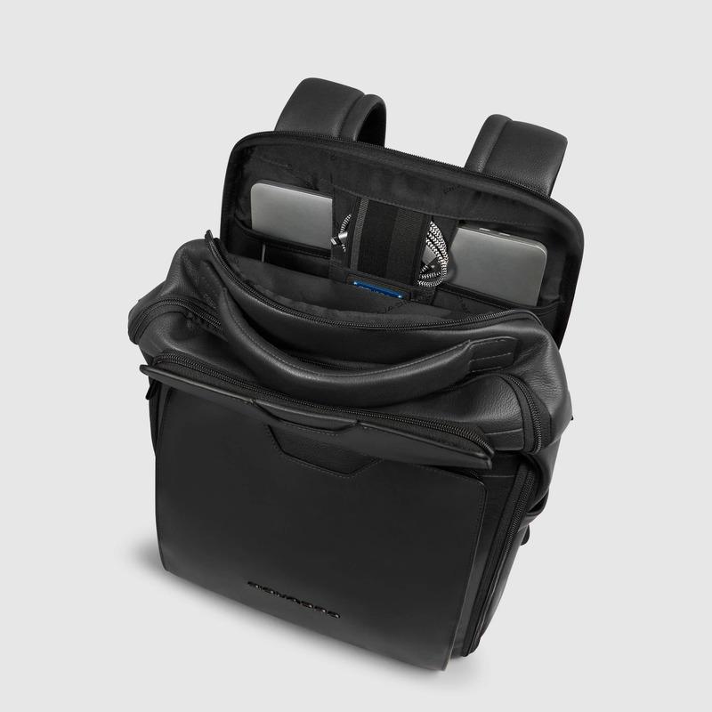 Piquadro Zaino da viaggio nero in pelle porta pc 15,6