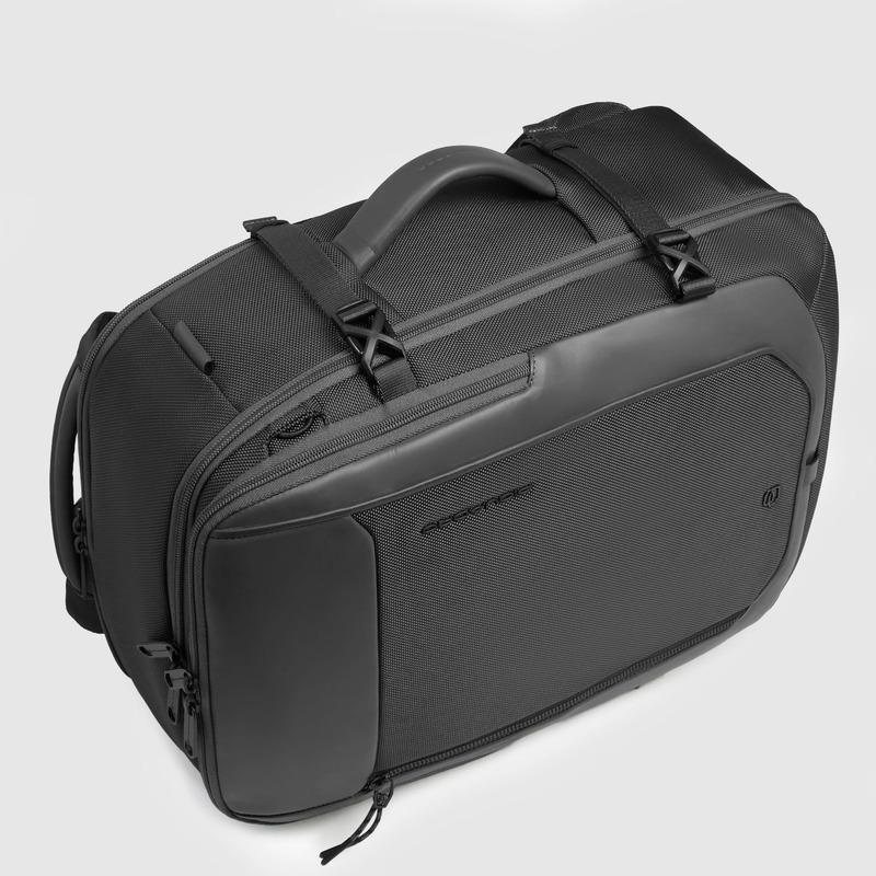 Piquadro Zaino da viaggio nero porta pc 15,6″ in tessuto riciclato e pelle Lyss