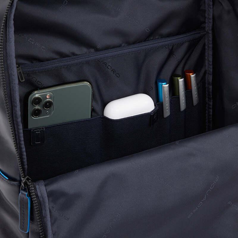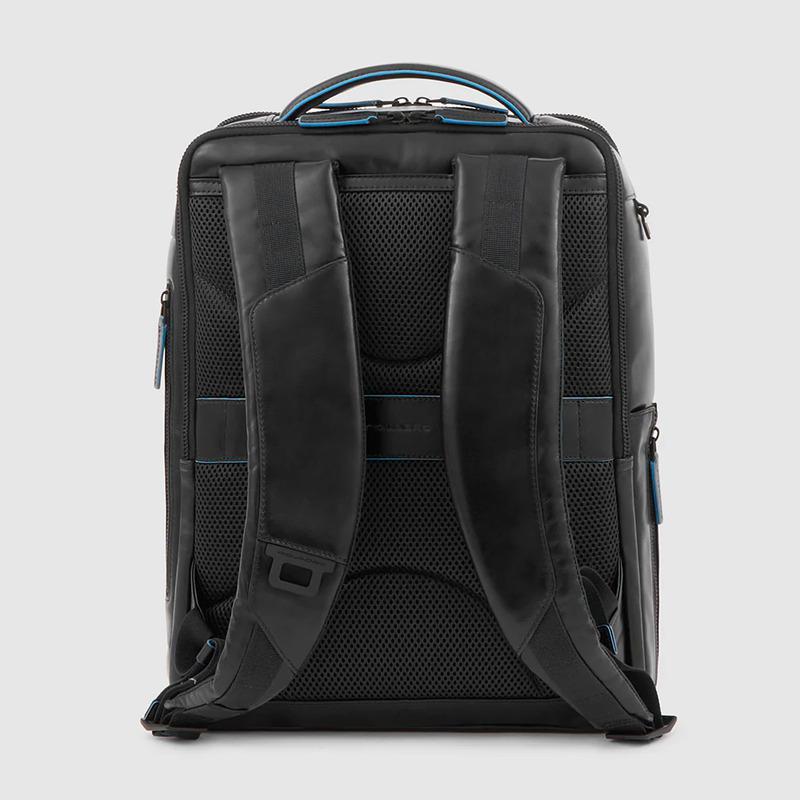 Piquadro Zaino nero in pelle porta computer 15,6″ e porta iPad Blue Square