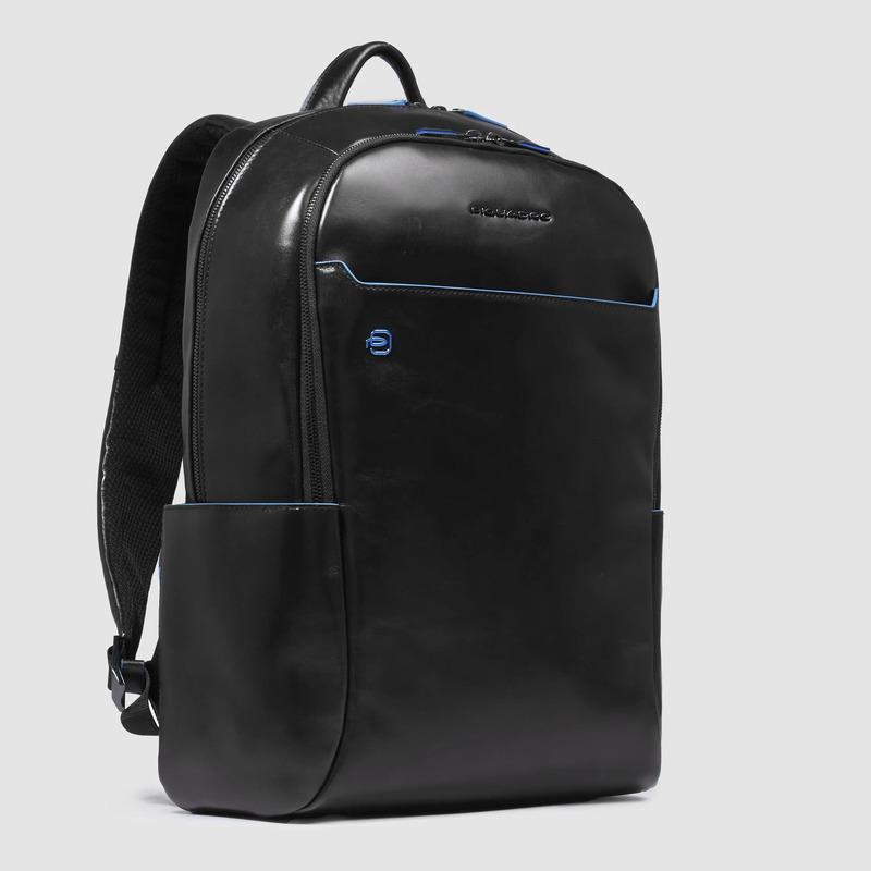 Piquadro Zaino nero in pelle porta pc 15,6″ Blue Square