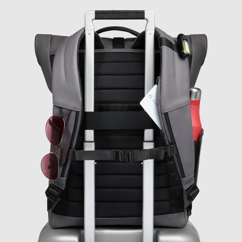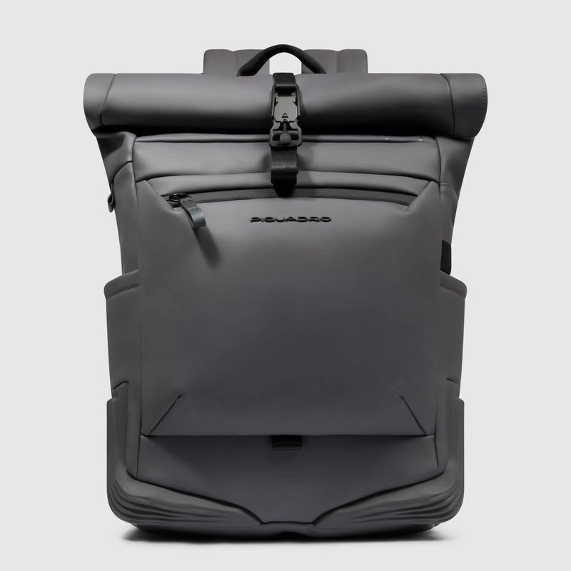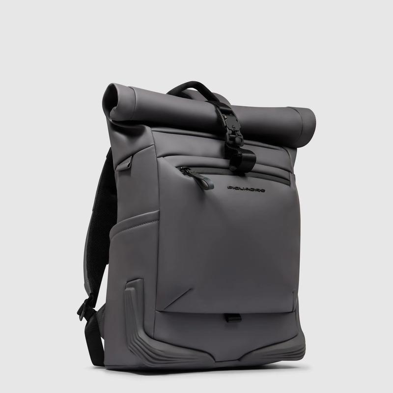 Piquadro Zaino roll-top grigio in tessuto gommato resistente all’acqua porta pc 15,6″ Corner 2.0
