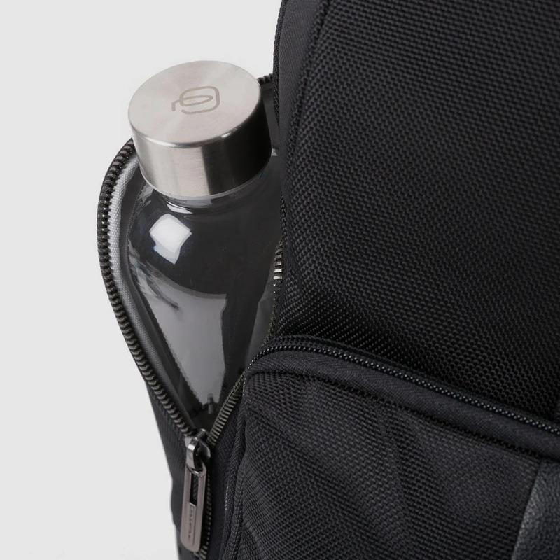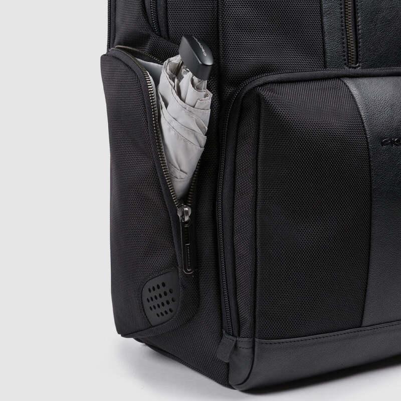 Zaino uomo fast-check porta pc e iPad in tessuto riciclato e pelle con protezioni antiurto e RFID, tasche porta bottiglia o ombrello e per AirPods