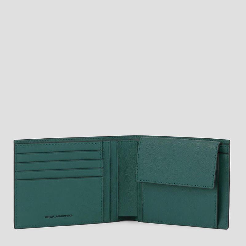 Portafogli uomo verde in pelle con porta monete Black Square
