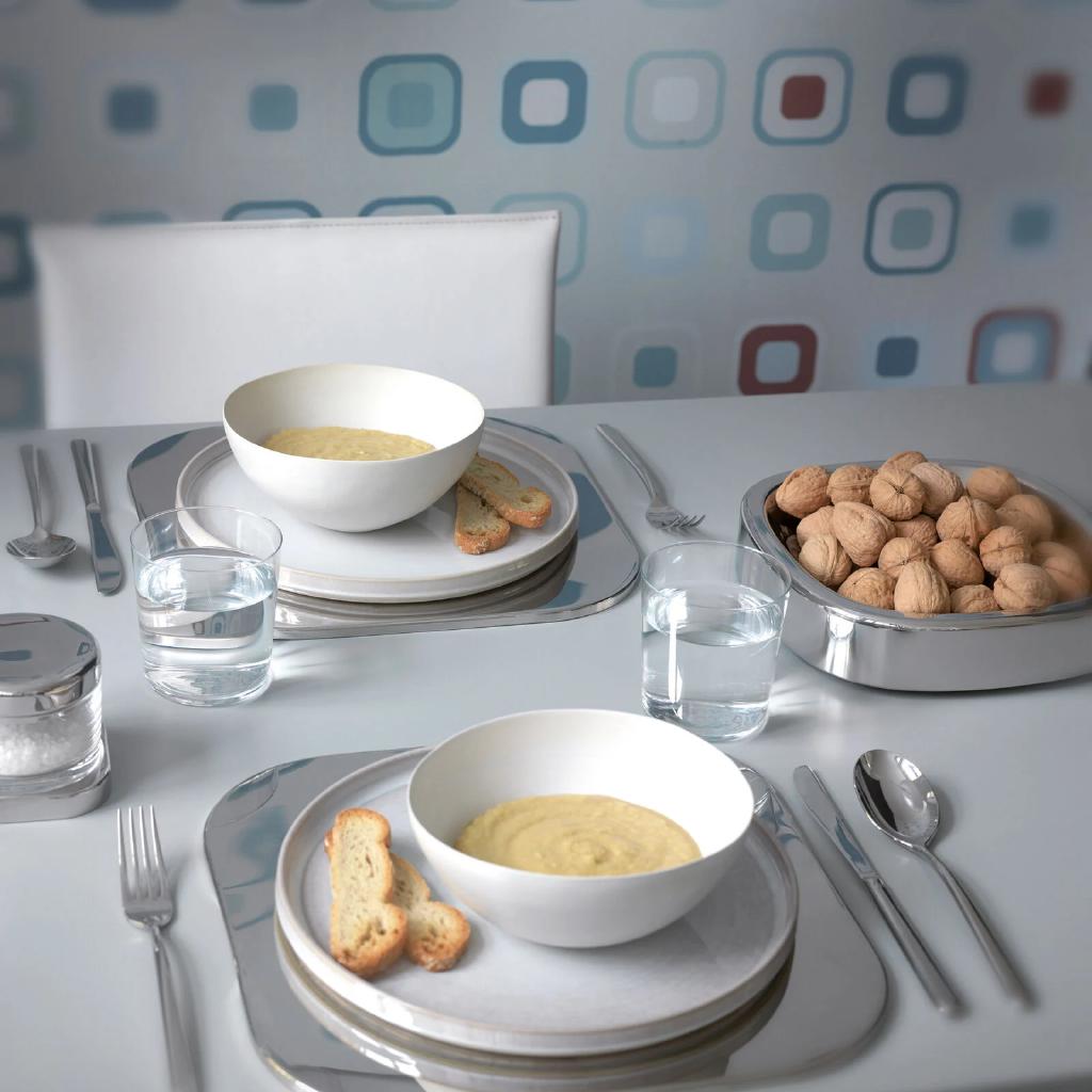 Un must di casa Sambonet: in Linear il rigore e la geometria delle forme sono modellati ad arte. I
