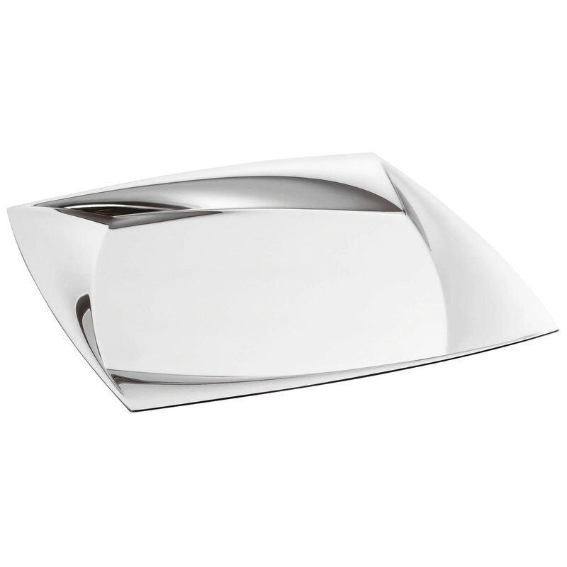 dell’acciaio avvolge la geometria di ciascun articolo della collezione, conferendo a coppe e vassoi