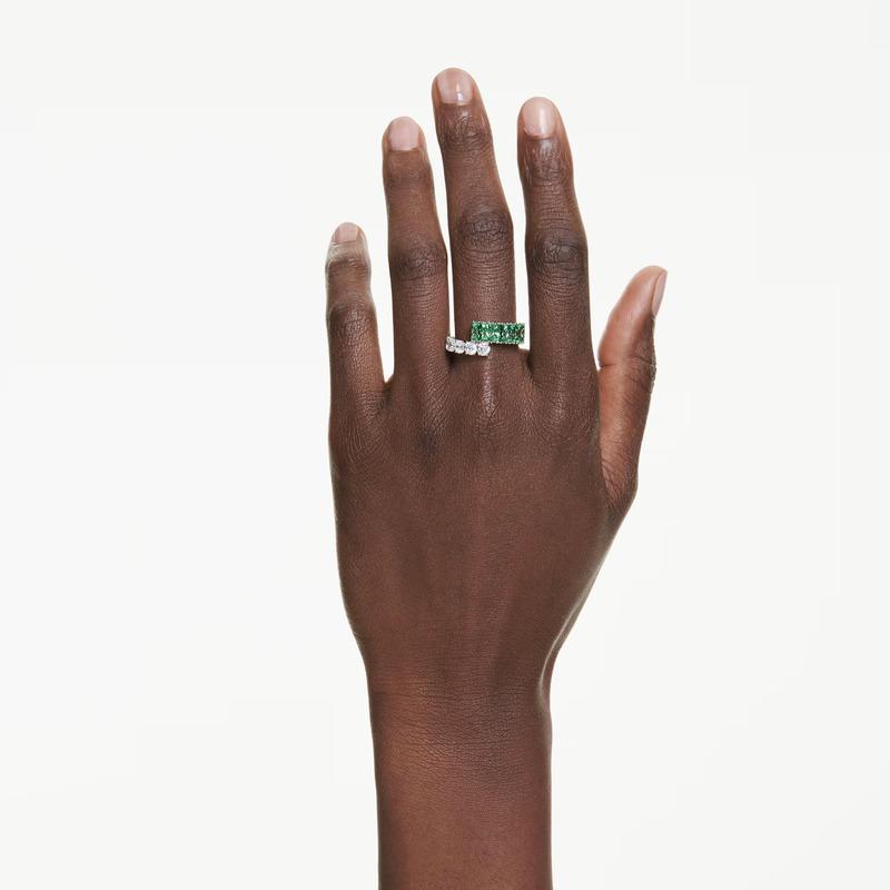 placcata rodio con Swarovski Zirconia trasparenti e verdi con tagli Round e Baguette. Una scelta