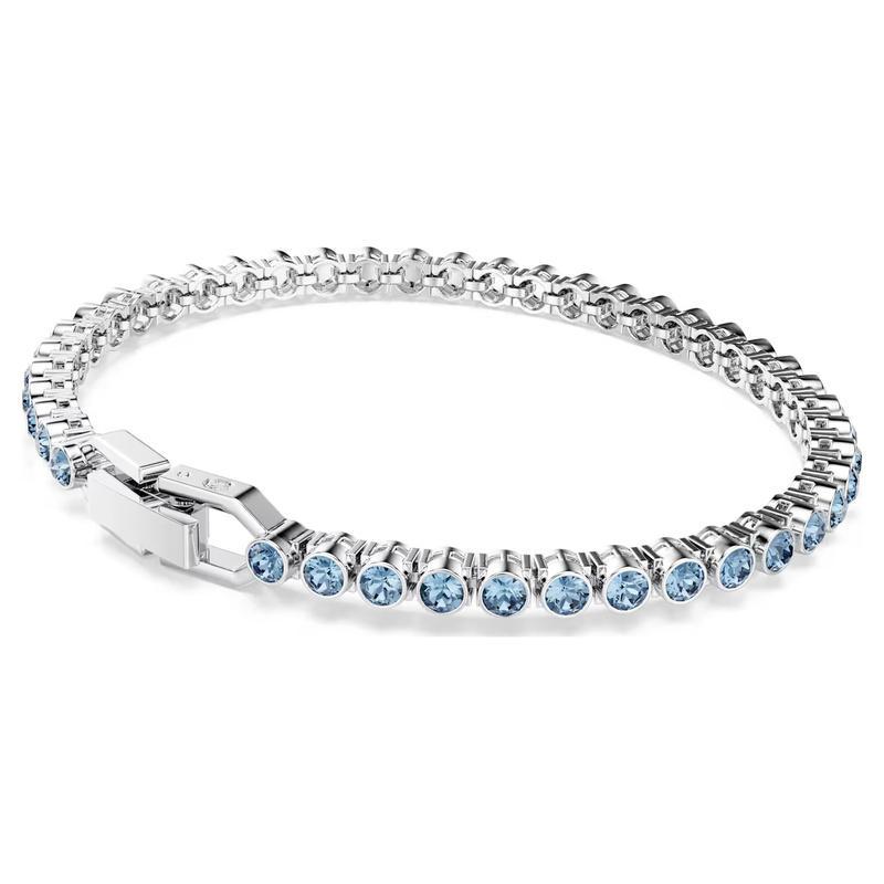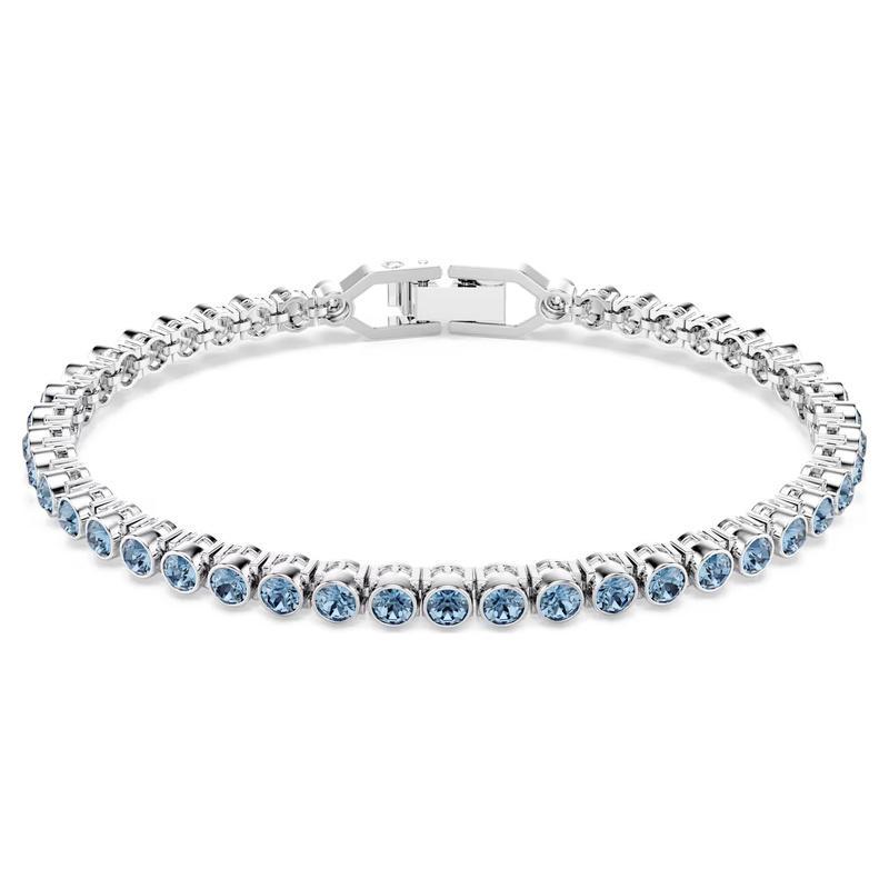 ’Un classico bracciale tennis con una luce che parla da sé. Questo delicato filo di cristalli blu con