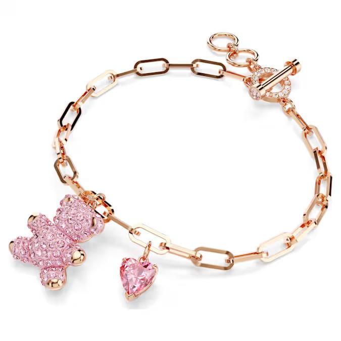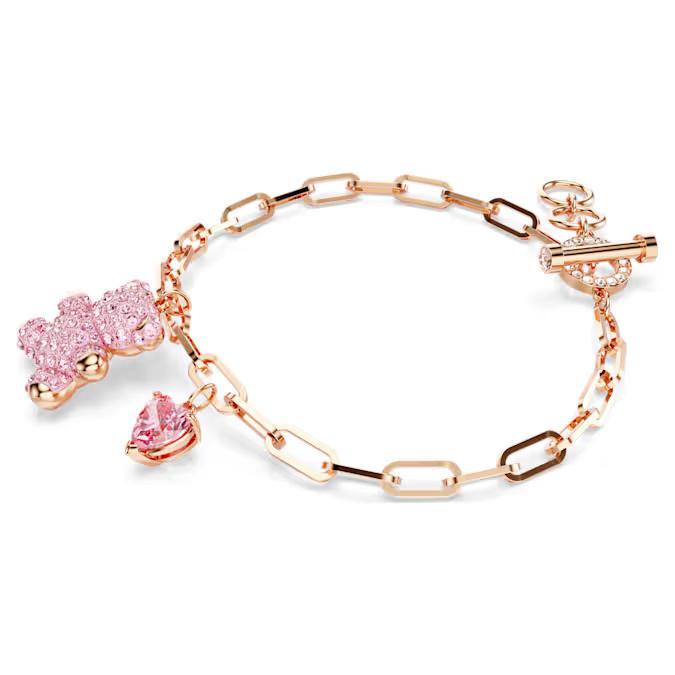 Questo bracciale a catena placcato color oro rosa presenta un giocoso motivo a orsacchiotto