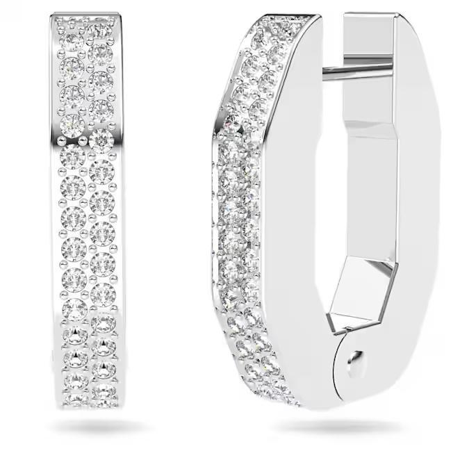Inno alla sofisticata tecnica pavé di Swarovski, questi piccoli orecchini a cerchio taglio octagon, dai