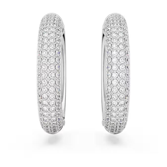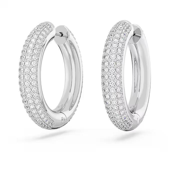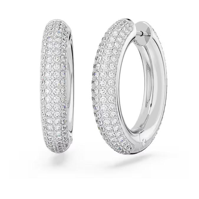tecnica pavé, ciascuno degli anelli circolari placcati rodio è impreziosito da scintillanti cristalli Cry