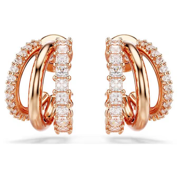 tre mini cerchi presentano una placcatura color oro rosa, impreziositi da Swarovski Zirconia taglio