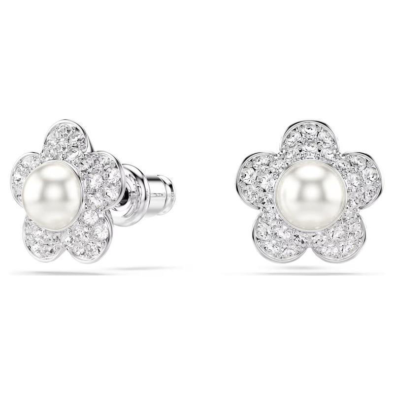 Crystal Pearl, Taglio Round, Fiore, Bianchi, Placcato rodio