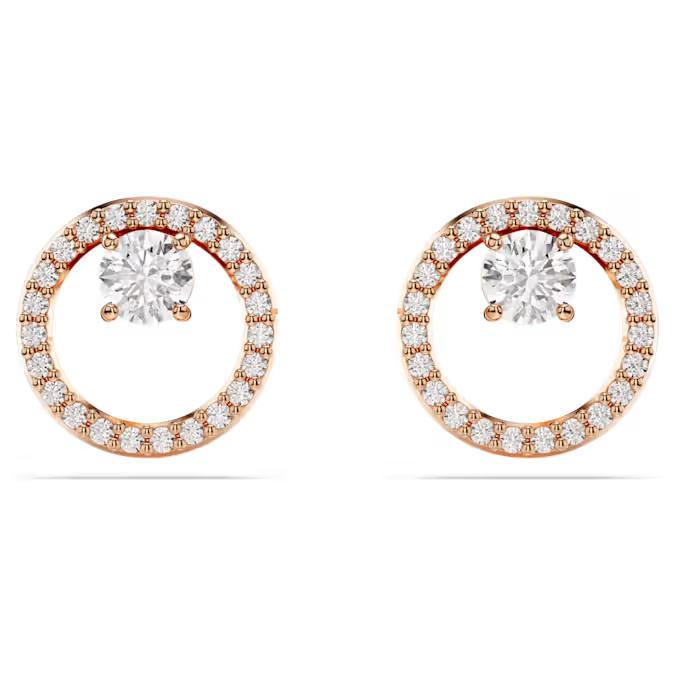 orecchino a buco è placcato color oro rosa e presenta un anello centrale in pavé di Swarovski