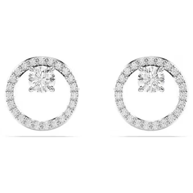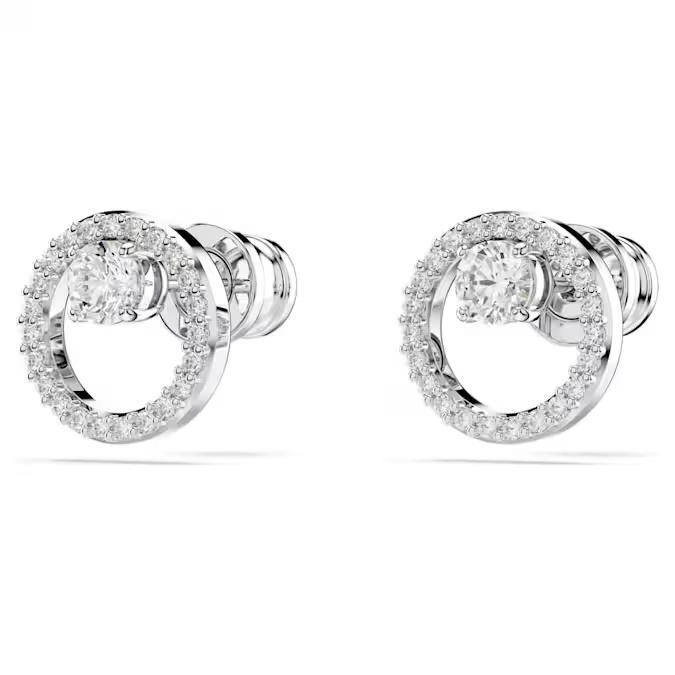 orecchino a buco è placcato rodio e presenta un anello centrale in pavé di Swarovski Zirconia