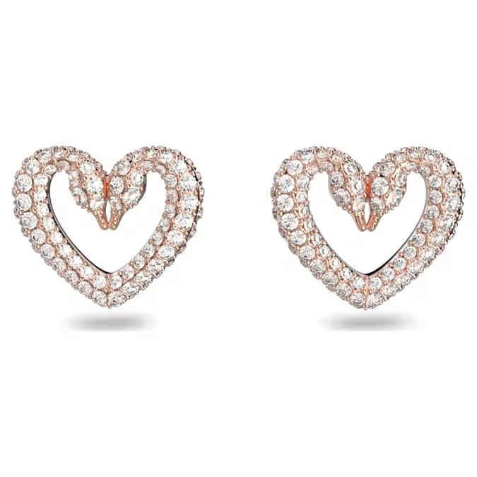 intrapresa dall’iconico emblema del cigno Swarovski. Questo paio a forma di cuore, placcato in